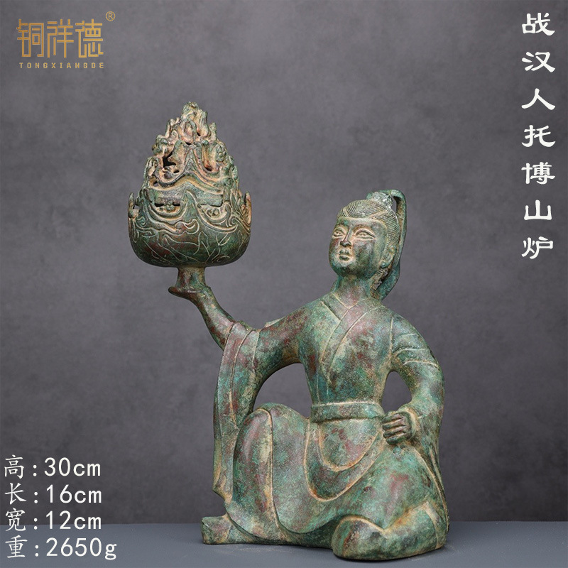 洛陽漢代青銅書生博山炉銅薫炉香炉置物家庭用室内盤薫香器茶卓玄関