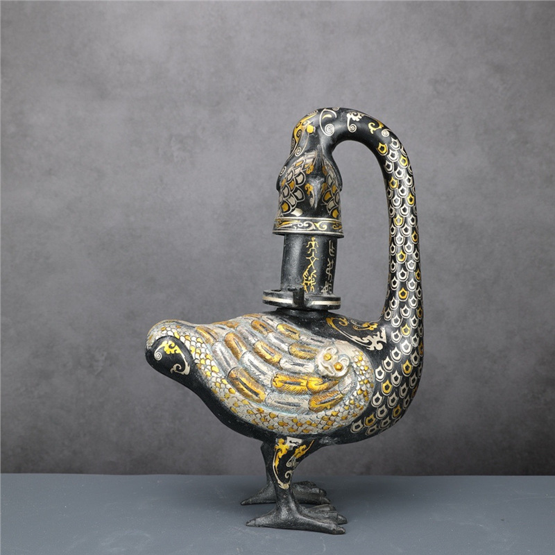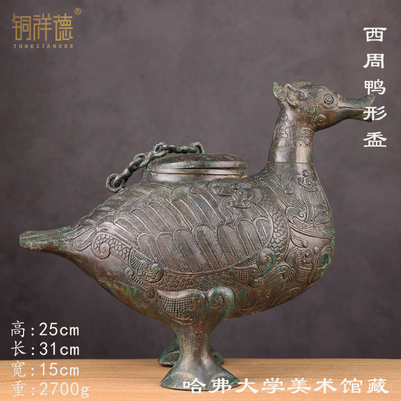 銅祥徳古青銅器漢代鴨型尊純銅動物造形古遊び紅斑緑刺繍古典芸術品