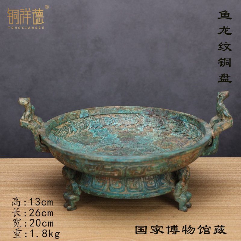 戦国青銅器銅魚盆聚宝盆骨董コレクション自然包老糊さび色紅斑緑錆工芸コレクション