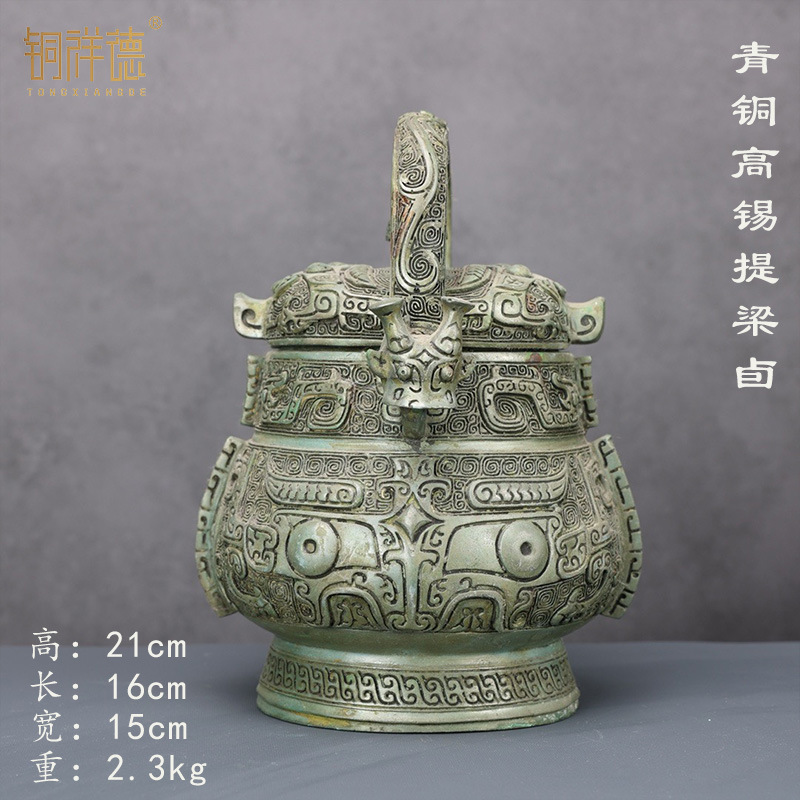 銅祥徳博物館製青銅高錫白銀光獣面提梁銘文樊線高級贈り物置物