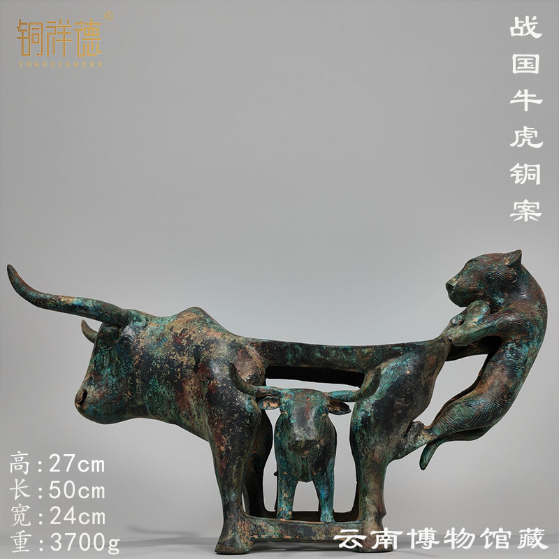 古青銅器鄭州古代旧戦国青銅器牛虎銅案置物国雲南省博物