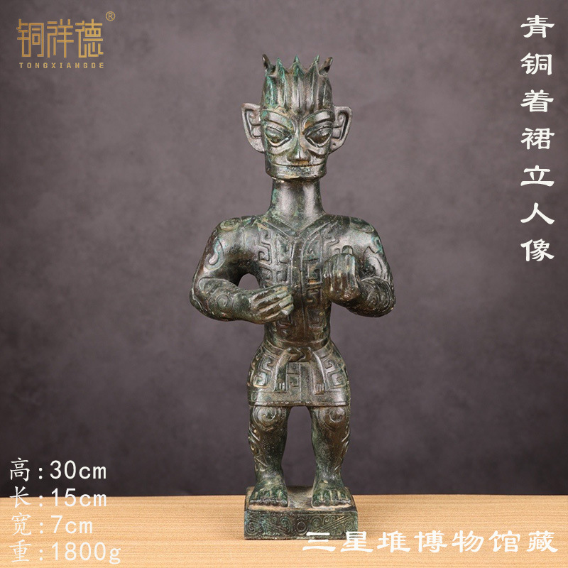 銅人を積んで正座して璋の銅人の四川博物館の家の装飾の置物の骨董品のホールの収集品を持ちます。