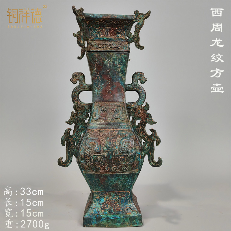 西周の時期の奎龍紋方壺博物館の骨董品は青銅器の置物を収集します。