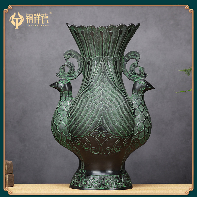 青銅器古置物青銅双鳳尊酒樽吉祥鳥尊古遊び家庭装飾工芸品銅花瓶