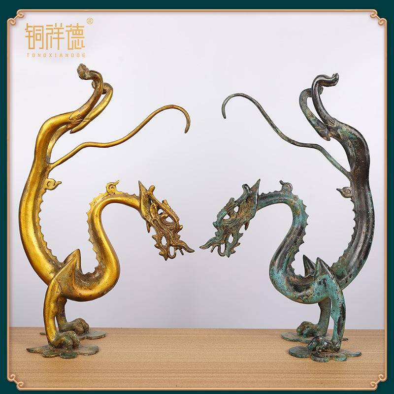 古青銅器唐代金銅龍置物純銅立龍走龍古工芸品客間装飾品