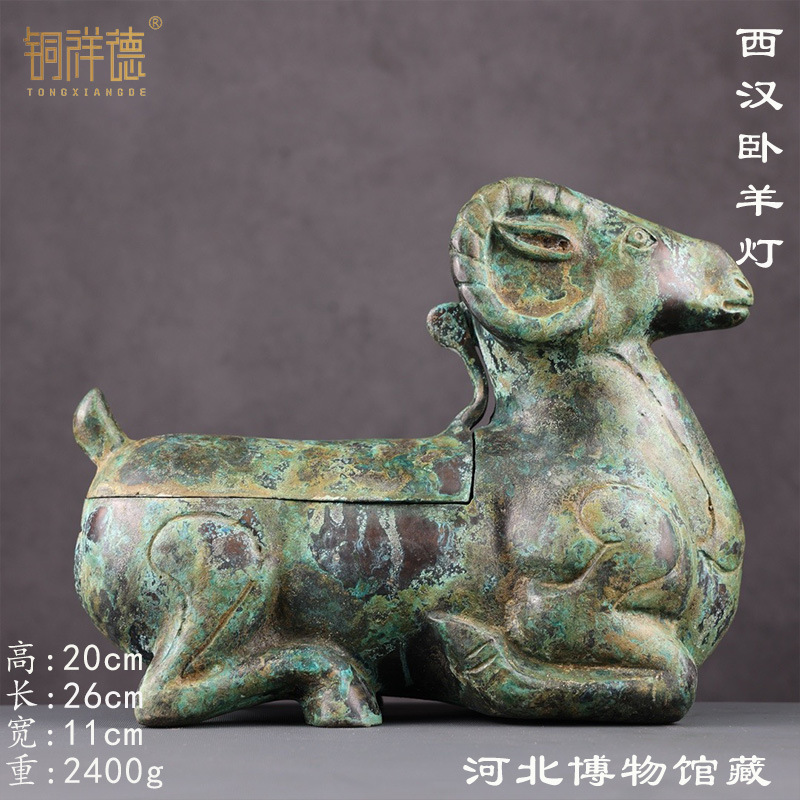 古青銅器西漢臥羊灯古代銅灯具旧影道具河北博物館蔵