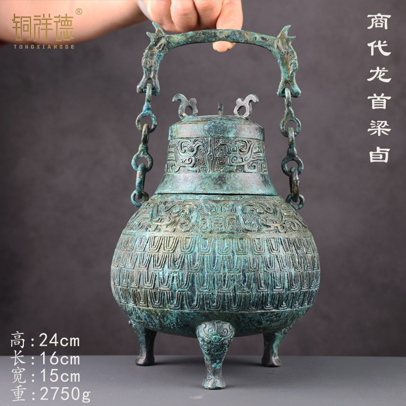 商代龍首提梁青銅酒器置物コレクション時代劇映画とテレビの道具家具高級青銅礼器