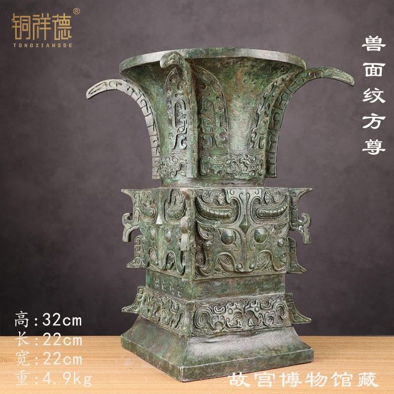 銅祥徳工芸東周紋方座円口尊博物館骨董コレクション高級青銅礼器