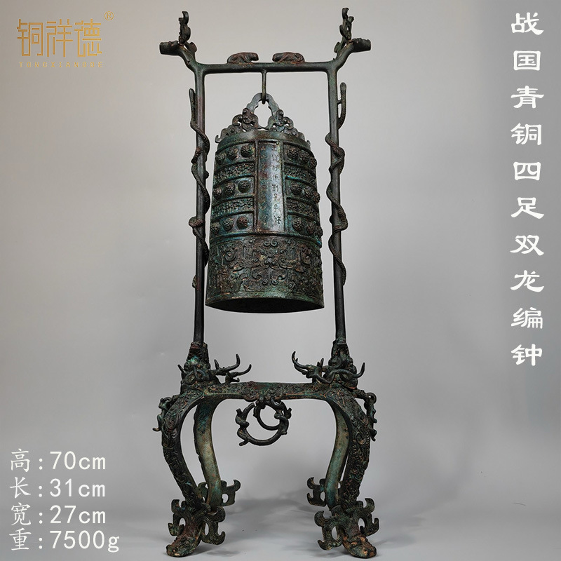 戦国四足双龍編鐘碑文博物館骨董コレクションホームギフト青銅器置物銅祥徳