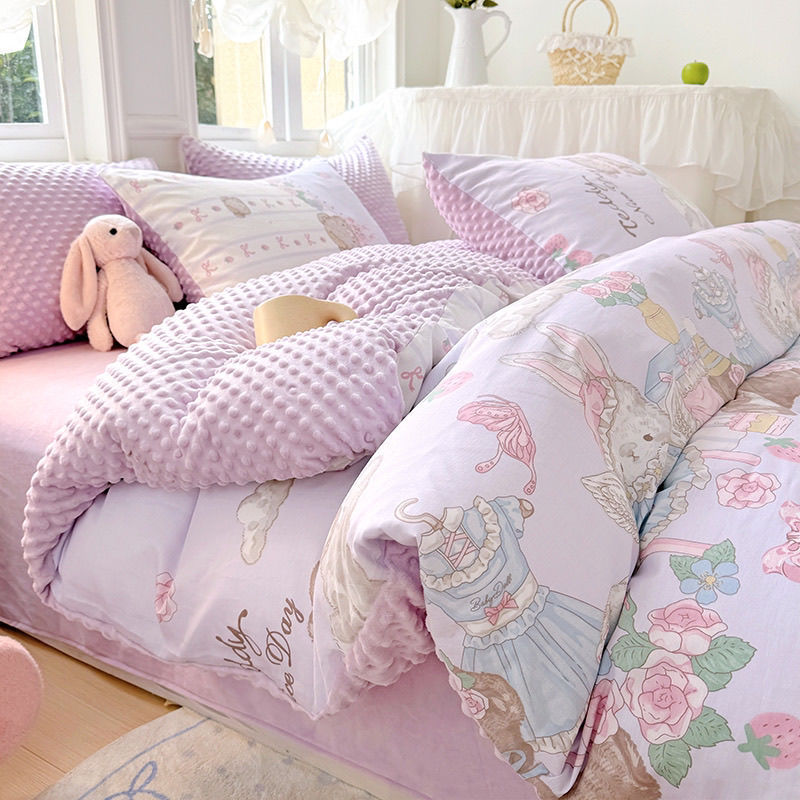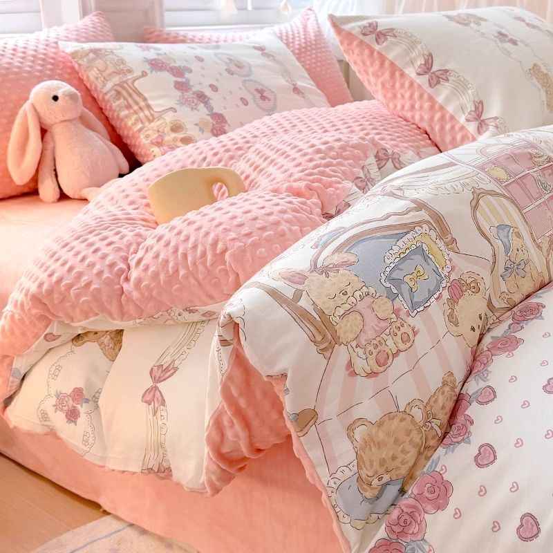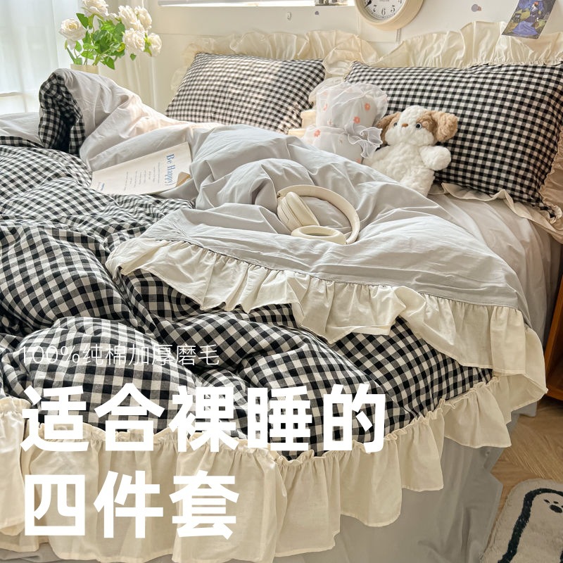 小香風レース水洗い綿韓国式四点セットins少女王女ハス葉シーツセット寮三点セット