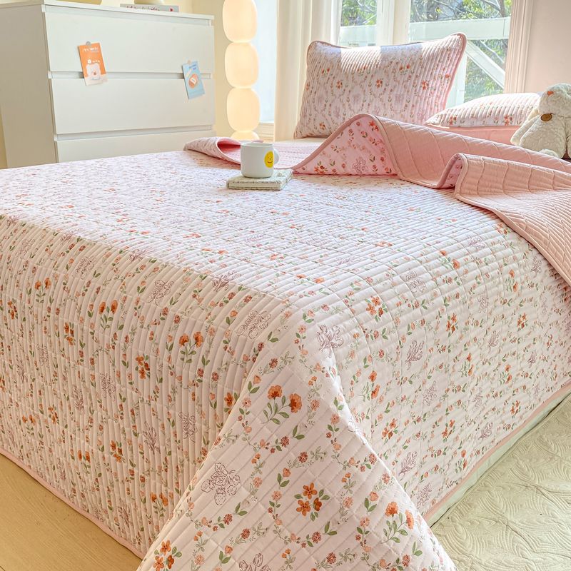 田園小砕花水洗浄綿ベッドカバー3点セット滑り止めシーツシングルベッドカバー寮マットレスベッドマットレス四季