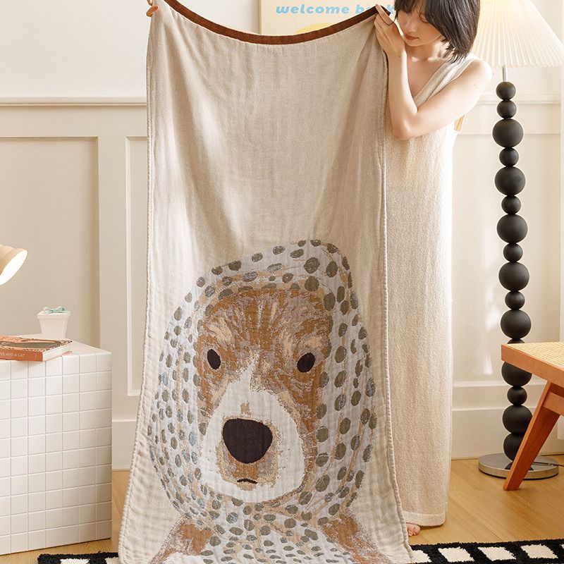 韓系純綿バスタオル四重ガーゼ純綿麻吸水吸汗バスタオル昼寝レジャーストール毛布
