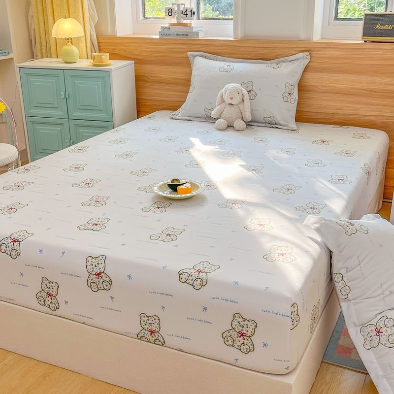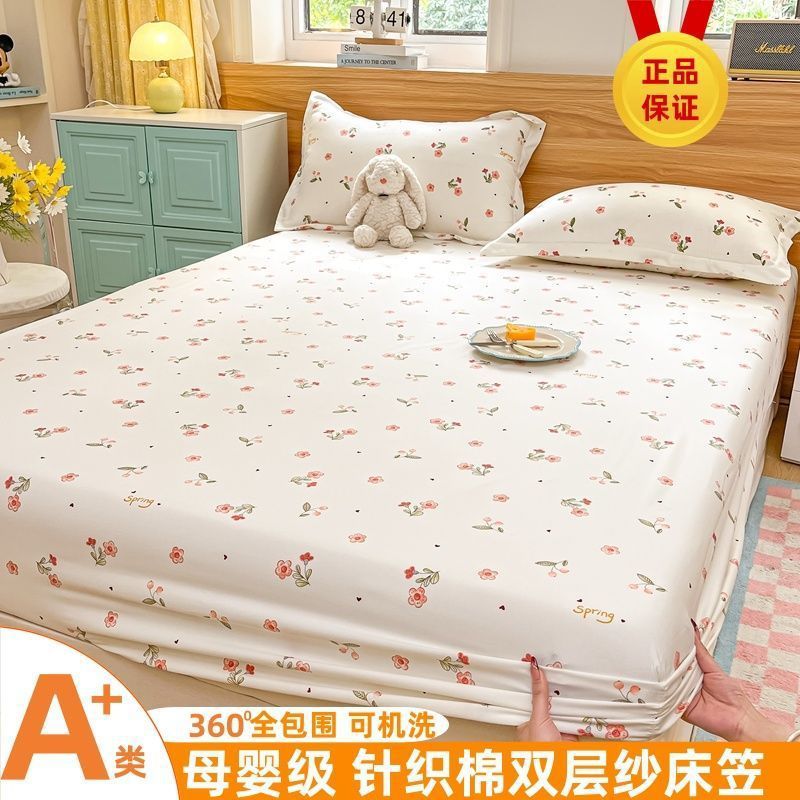 田園風二重糸メリヤス綿ベッド笠夏モデルアニメ全包囲通気パーム席夢思防塵ベッドカバー