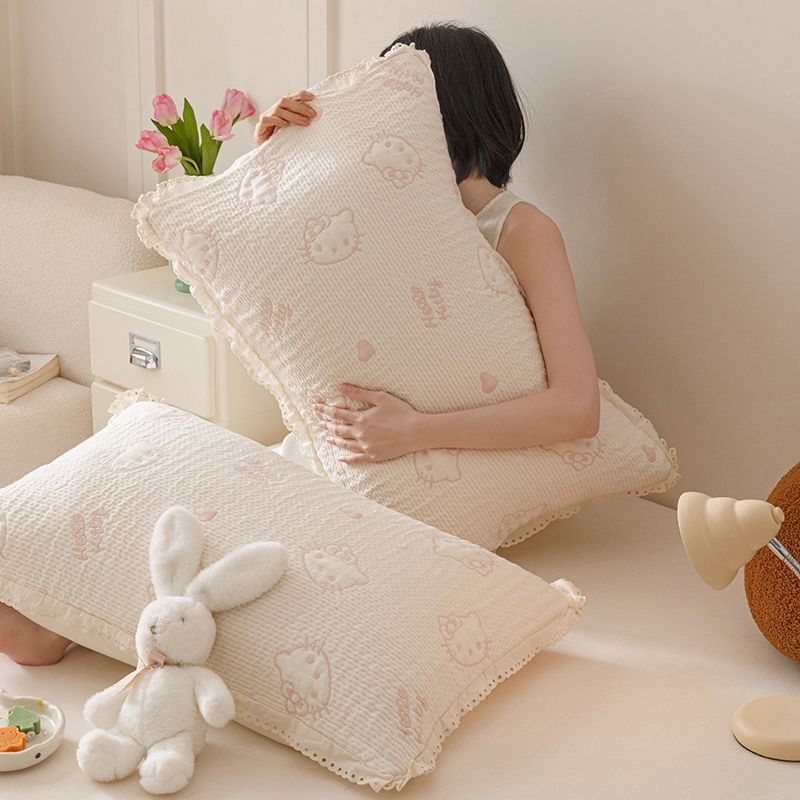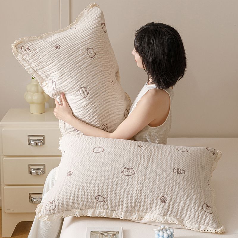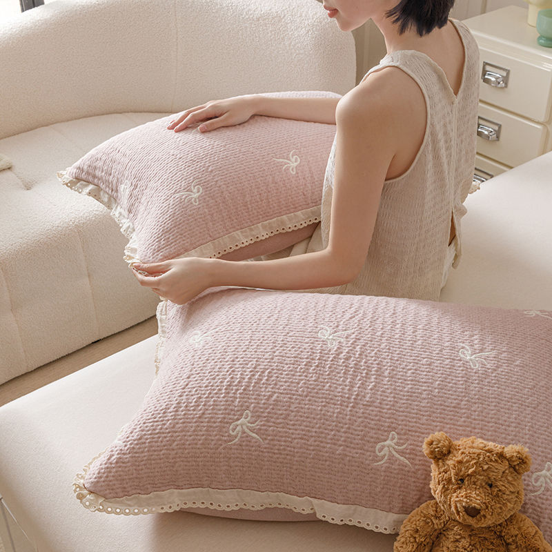 韓国プリンセス風小清新少女心全綿色織ジャカード枕カバー一対セット48X74純綿枕カバー