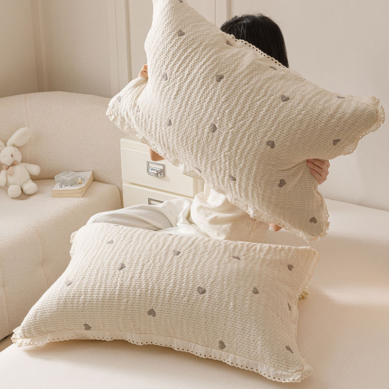 韓国プリンセススタイルの新鮮なガーリーハート綿先染めジャカード枕カバー 48X74 純綿枕カバーのペア