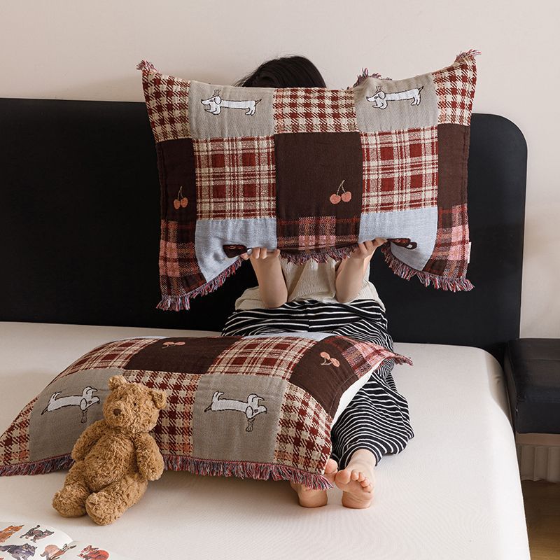 レトロな北欧風の純綿のガーゼのフリンジの枕のタオルのペアは全綿糸の通気性を詰めて汗を吸います。