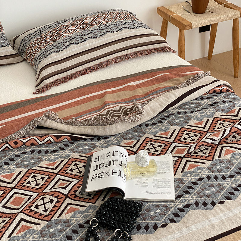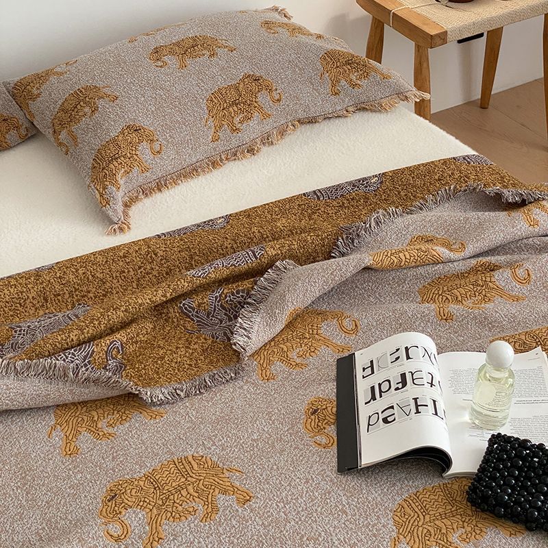民宿風全綿四段ガーゼの毛布は柔らかくて繊細な純綿の新しい中国式ソファーベッドの尾飾り毛布の昼休み毛布です。