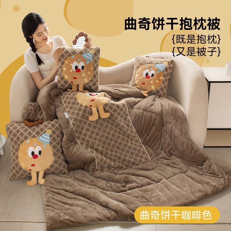 立体刺繍クッキーとベルベットの厚手多機能折り畳み抱き枕が二合一のぬいぐるみ昼寝枕になっている