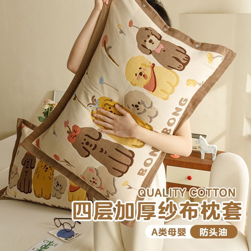 漫画純綿枕カバー大版色織ジャカード四層綿ガーゼ枕カバー綿枕カバー