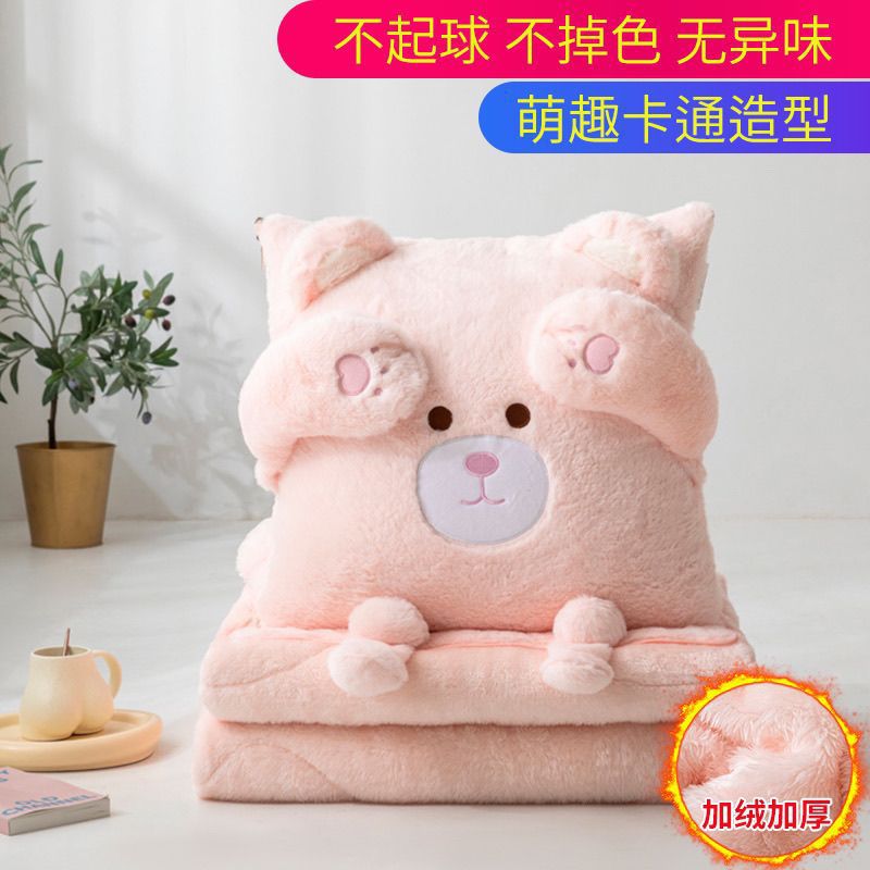 厚手のミルクパイル抱き枕布団両用自動車クッション車載枕オフィス昼寝毛布二合一