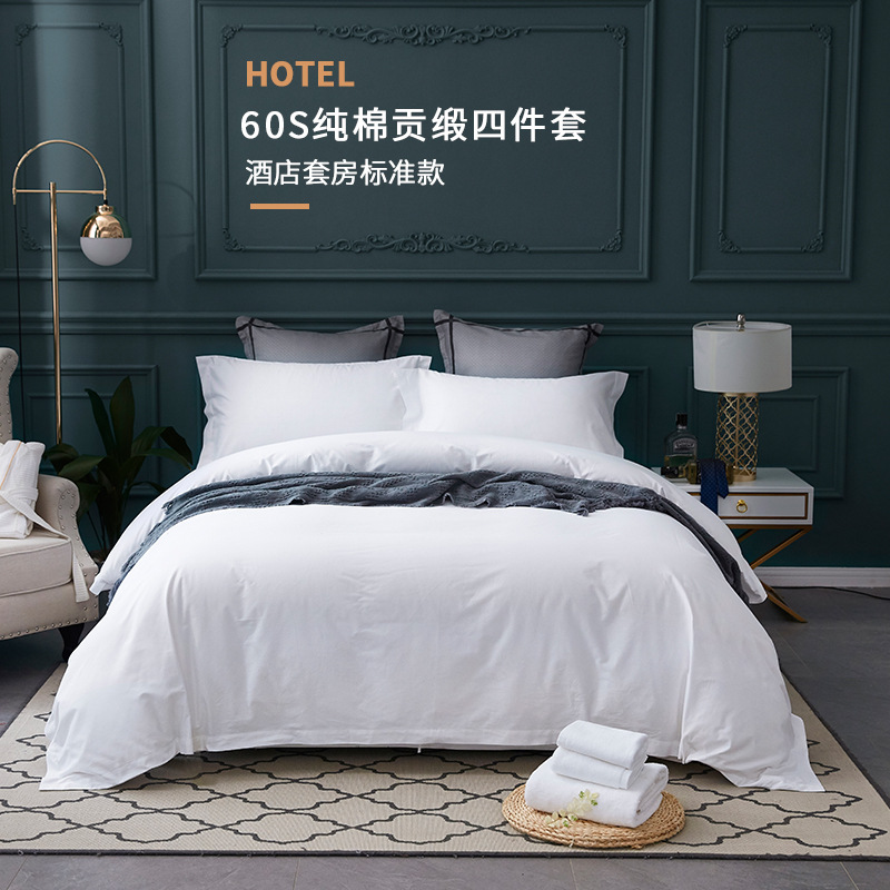 5つ星ホテル60本の純白の功のサテンのシンプルな綿の4つのセットのホテルの寝具の民宿のマンション