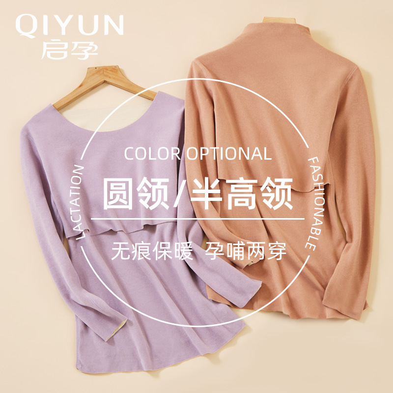 授乳秋衣上着産後授乳単品授乳服妊娠期妊婦保温下着にベルベットをつけて秋冬を厚くする