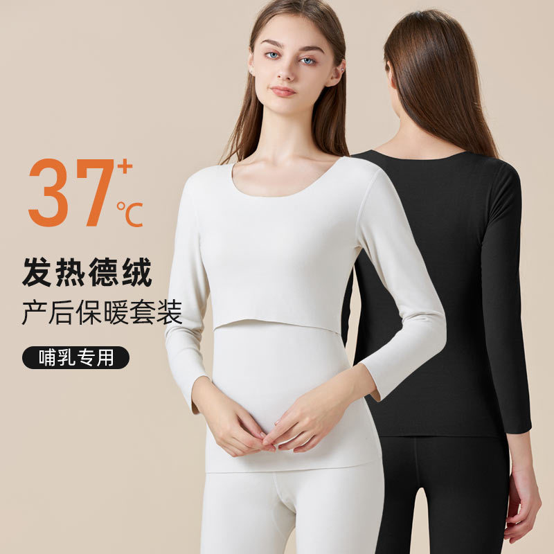 授乳秋衣秋ズボンセット産後月子服秋冬金徳絨毯底保温下着授乳パジャマ加毛