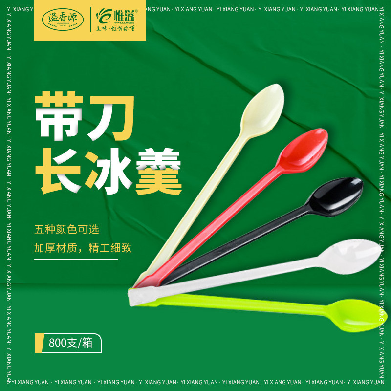 溢香源長氷羹長柄包丁付使い捨てプラスチックデザートケーキアイスクリームスプーン商用800本