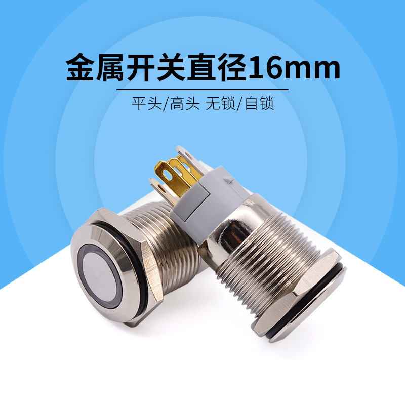 金属スイッチ直径16mm平頭高さロックなしセルフロックランプ付きリング電源5脚スイッチ一開一閉