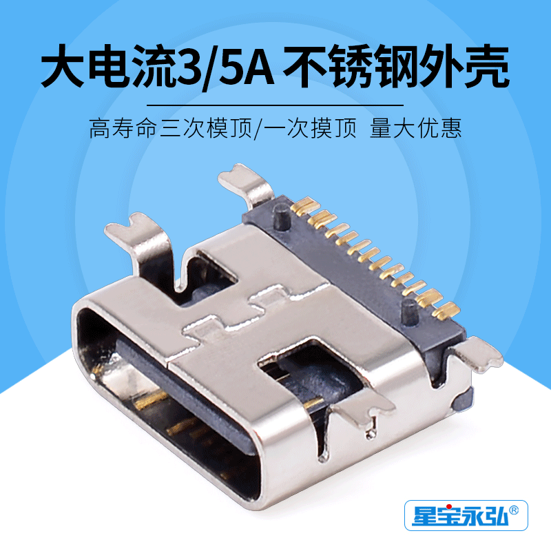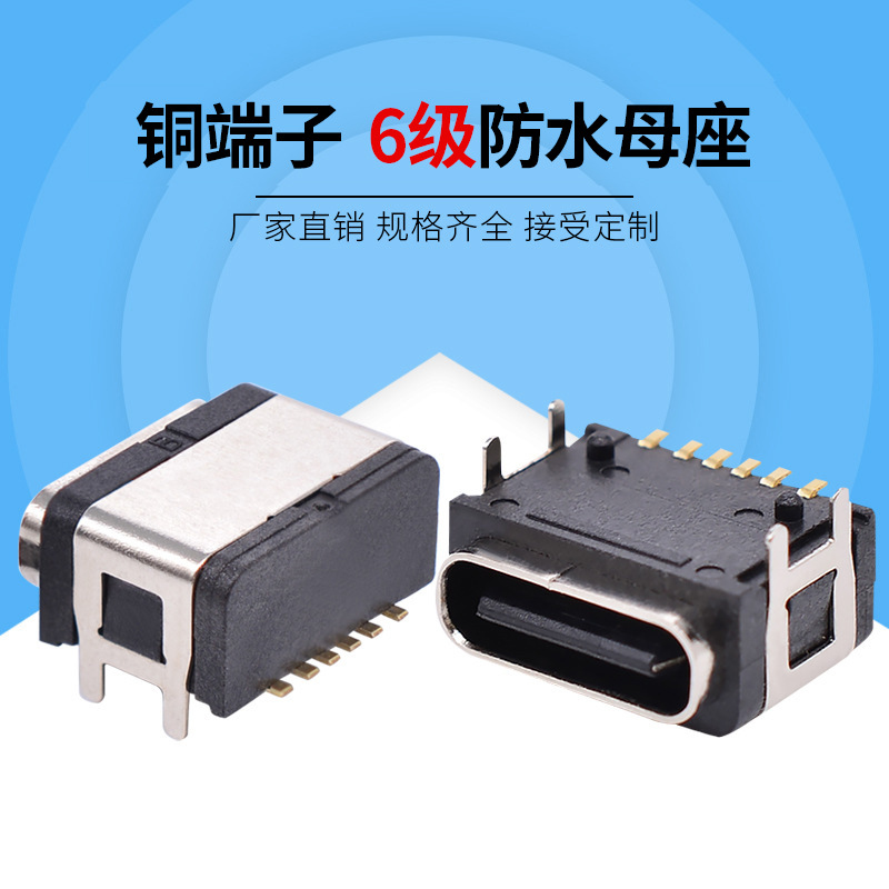 メーカー直販type-c 6pin銅端子位置決め柱type-c母座防水コネクタipx6/7