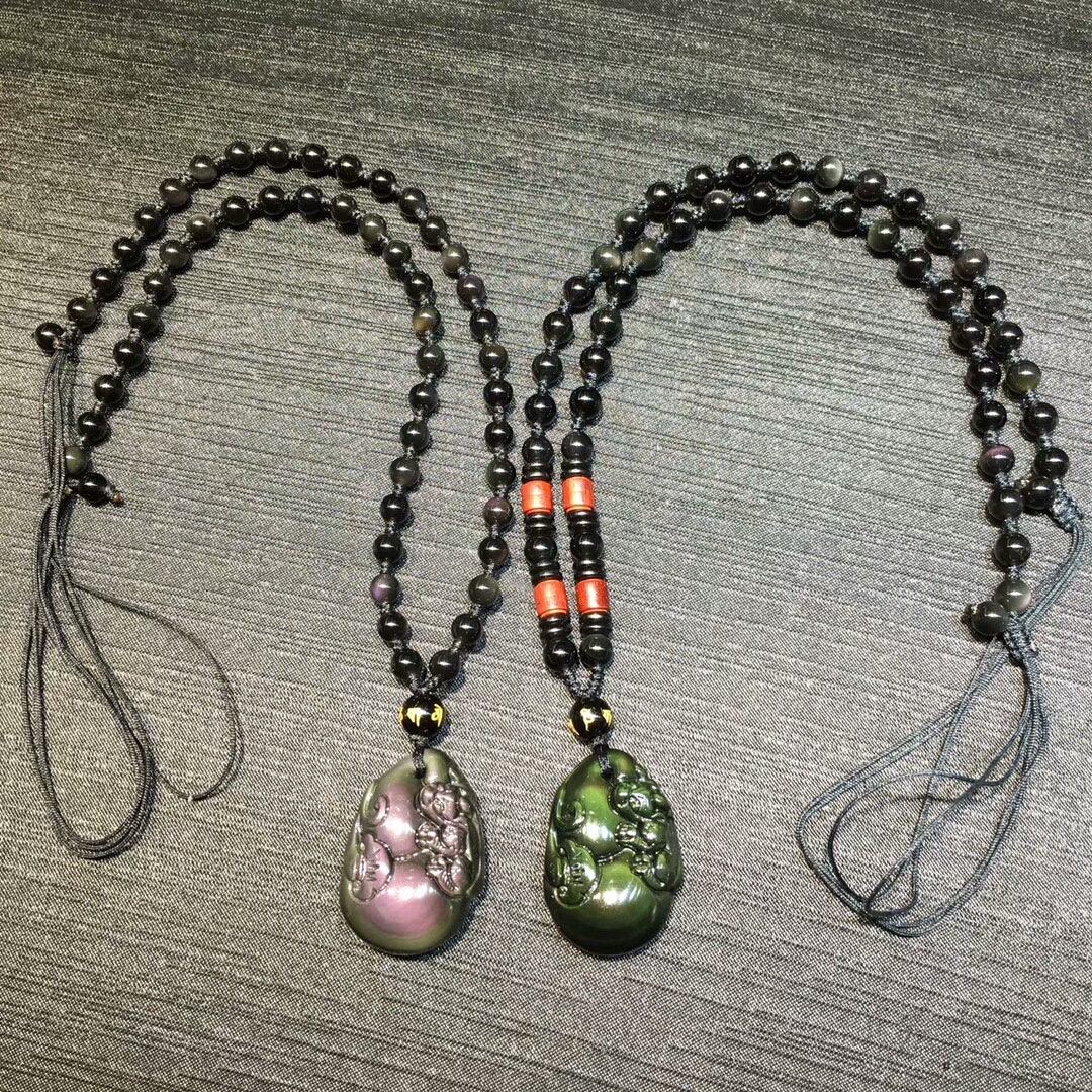 東海節高水晶天然虹眼黒曜石瓢箪一世無憂ペンダント男女ファッションネックレス