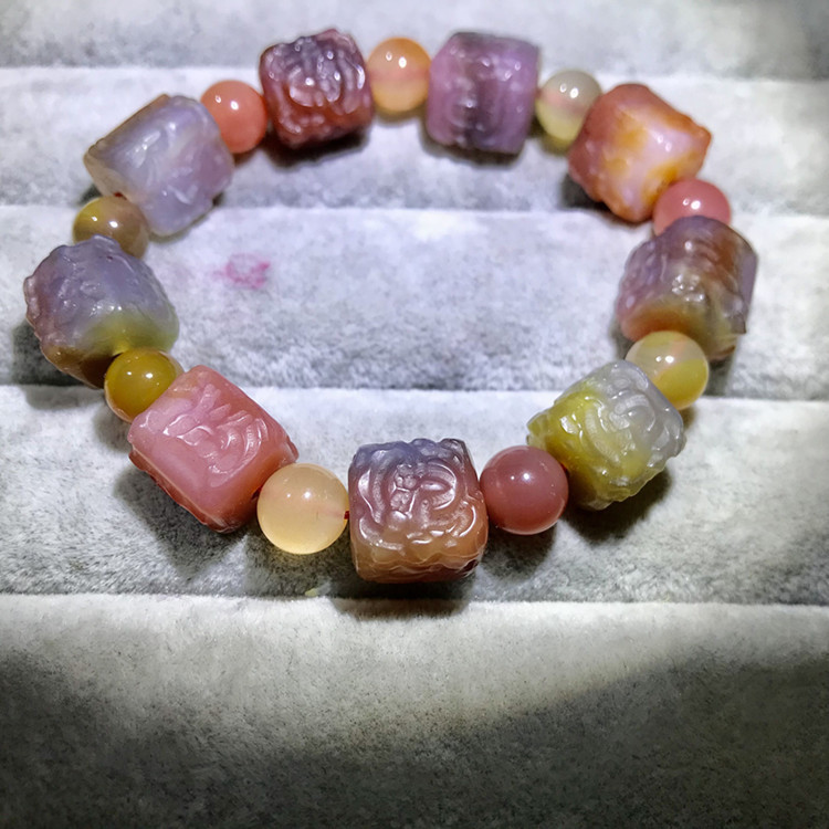 瑞藍水晶天然塩源瑪瑙風は牡丹の方糖のブレスレットを着てフロストします。