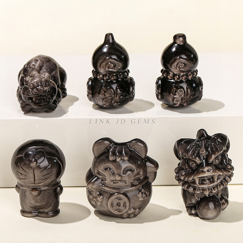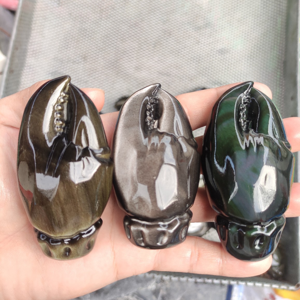 天然の黒曜石銀曜石金曜石彩曜石置物手にはお金があります。