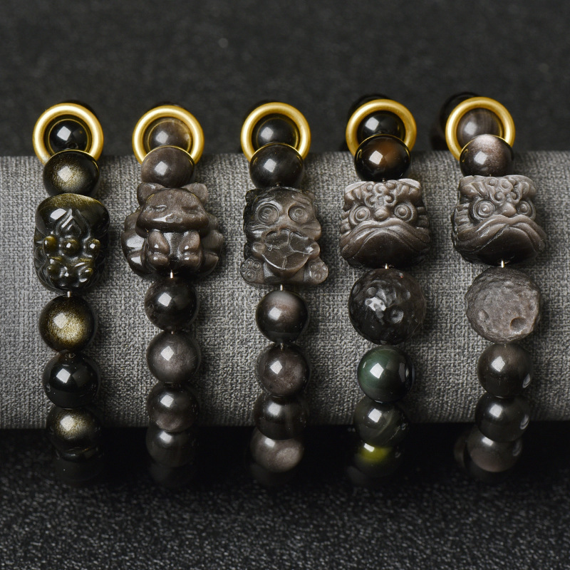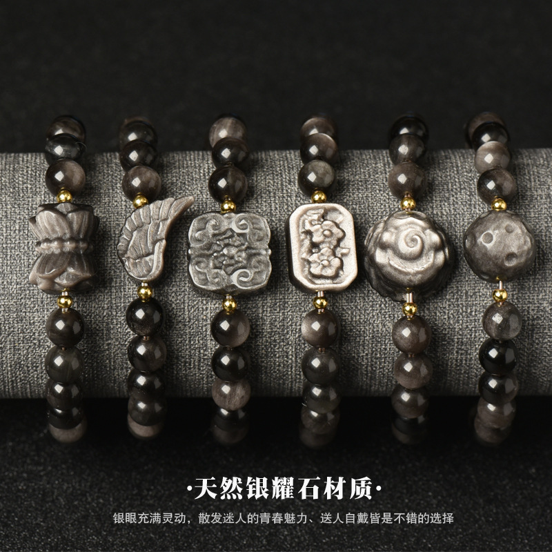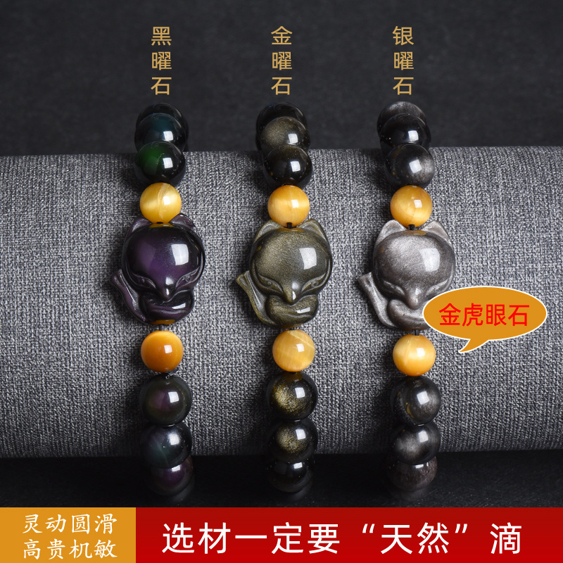 黒曜石手串銀耀石国風ブレスレット民族風笑仏隕石九尾狐かわいい男女子手串