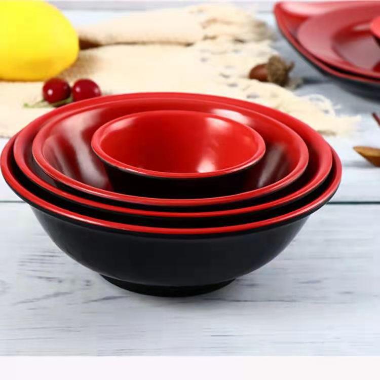 メラミン美耐皿模造磁器厚さは赤と黒の2色の闘碗ホテルの軽食家庭用茶碗メーカー直販