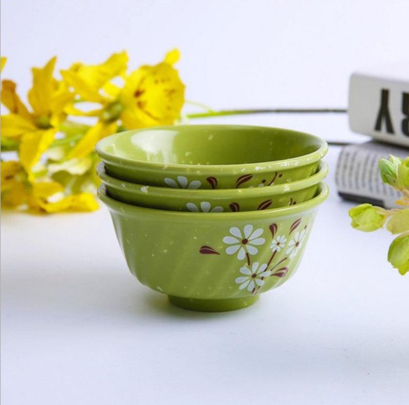 メラミン食器雪花5005杯5インチ家庭用盛飯碗は磁器に似せて腐っていないスープ碗の緑色のメラミン碗の卸売りです。