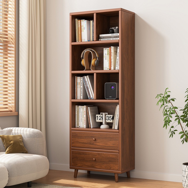 実木本棚の客間は壁の角に寄りかかって物棚を置く家庭用の日本式の狭い棚の胡桃の木の色は本棚を展示します。