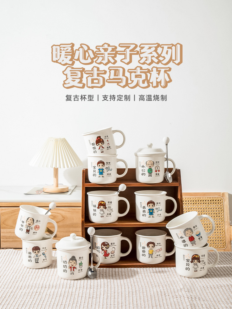 親子マグカップかわいい家族陶磁器コーヒー牛乳朝食子供用コップカスタマイズお土産