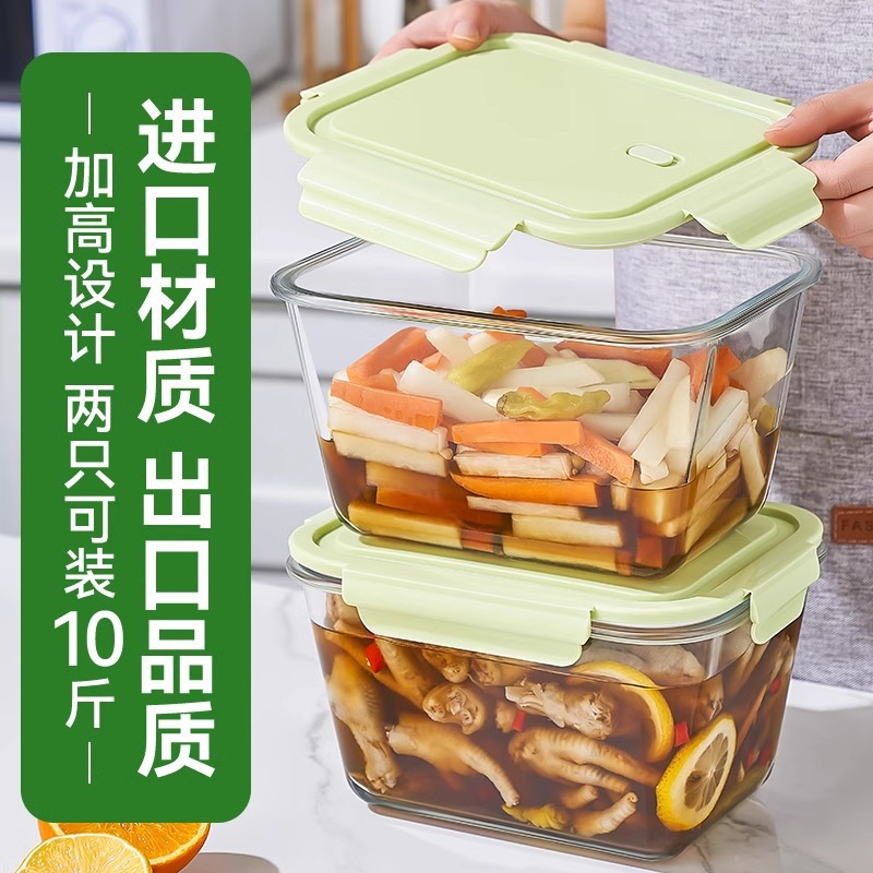 大容量ガラス保冷箱冷蔵庫専用食品密封箱漬物キムチ缶電子レンジ加熱弁当箱