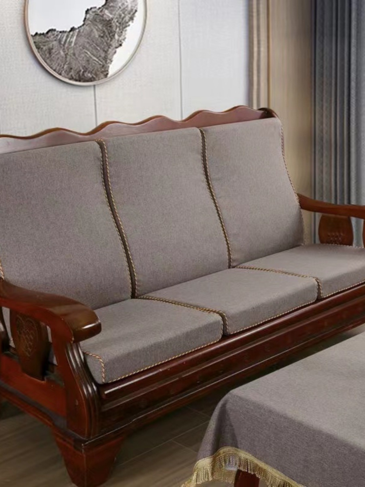 Dm @ 旧式の木のソファーの座布団は背もたれの連体を持っています。