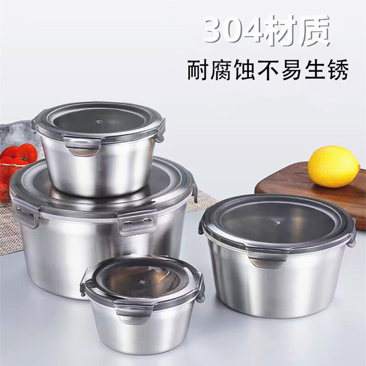 304ステンレス食品保存箱円形蓋付き食品分注箱家庭用冷蔵庫冷蔵収納密封箱