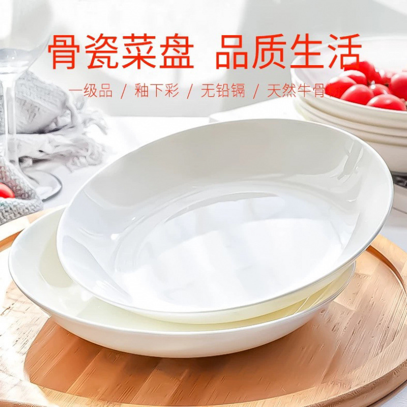 景徳鎮の純白の骨の磁器の皿の野菜の皿の円盤の家庭用の陶磁器の深皿のスープの皿の白磁の炒め物の皿の食器の皿