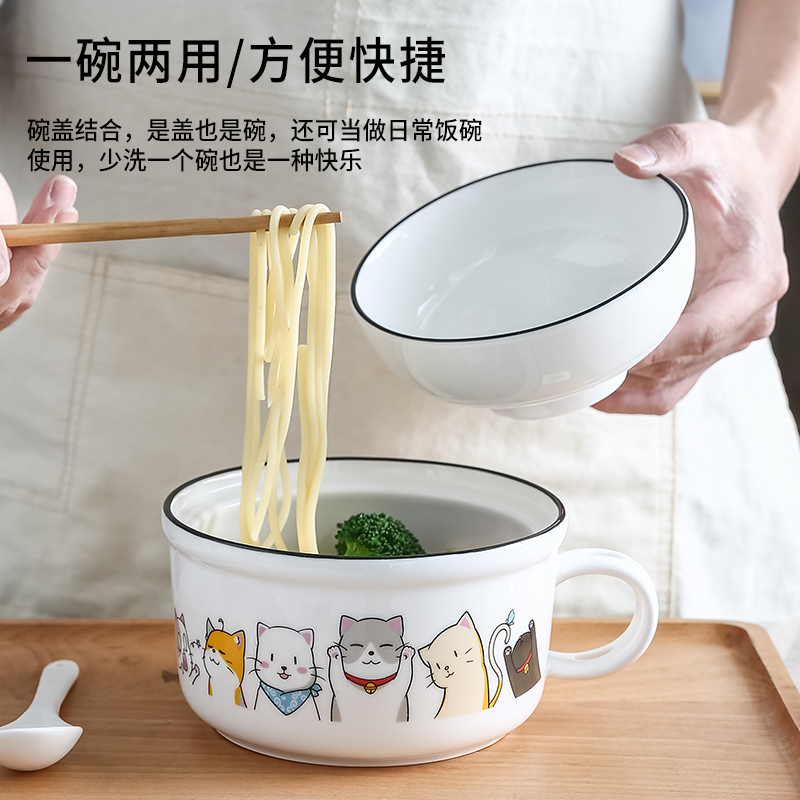 陶磁器の泡の碗は蓋の碗の学生の寮の単一の漫画のインスタントラーメンの碗の食器の食器の食器の箸のセットがあります。