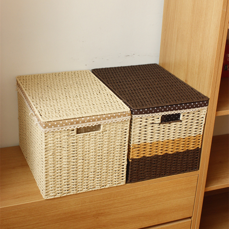 家庭用蓋付き収納かご藤編み草編みまねる収納ボックスデスクトップスナック玩具収納ボックス編み衣陳之紅