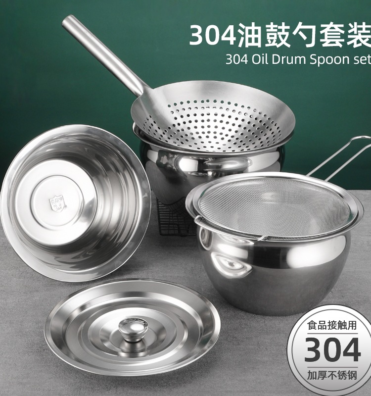 304ステンレス油盆蓋付き家庭用シリンダ子キッチン油鼓商用油盆食品級豚油盆