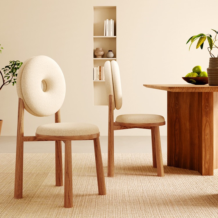 ネット赤ドーナツ食事椅子現代北欧シンプル背もたれ化粧椅子家庭用寝室クリーム風羊小毛椅子