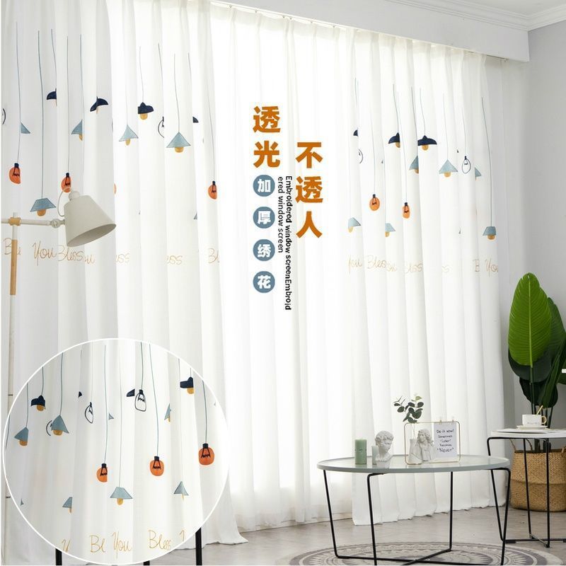 光を通さない人は厚いガーゼの日よけ刺繍のカーテンのベランダの窓の客間の完成品のカーテンの白い糸の王小を厚くします。