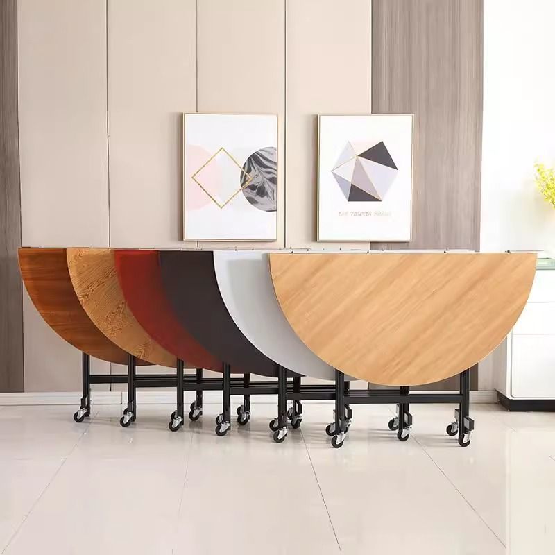 家庭用現代シンプルホテルホテル実木円形移動多機能大円卓折り畳み可能円卓食卓