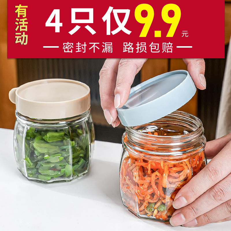 ✅ガラス缶密封保存缶家庭用冷蔵庫蓋付き小唐辛子油漬け物缶にんにく外付け貯蔵缶