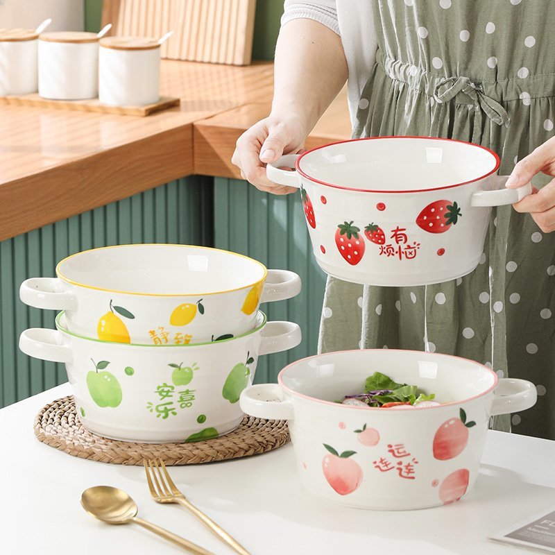 果物のイチゴの両耳のスープの碗の大きいサイズの家庭用陶磁器の大きい碗の泡の碗のナットの粉の碗はスープのたらいを盛って高温になります。